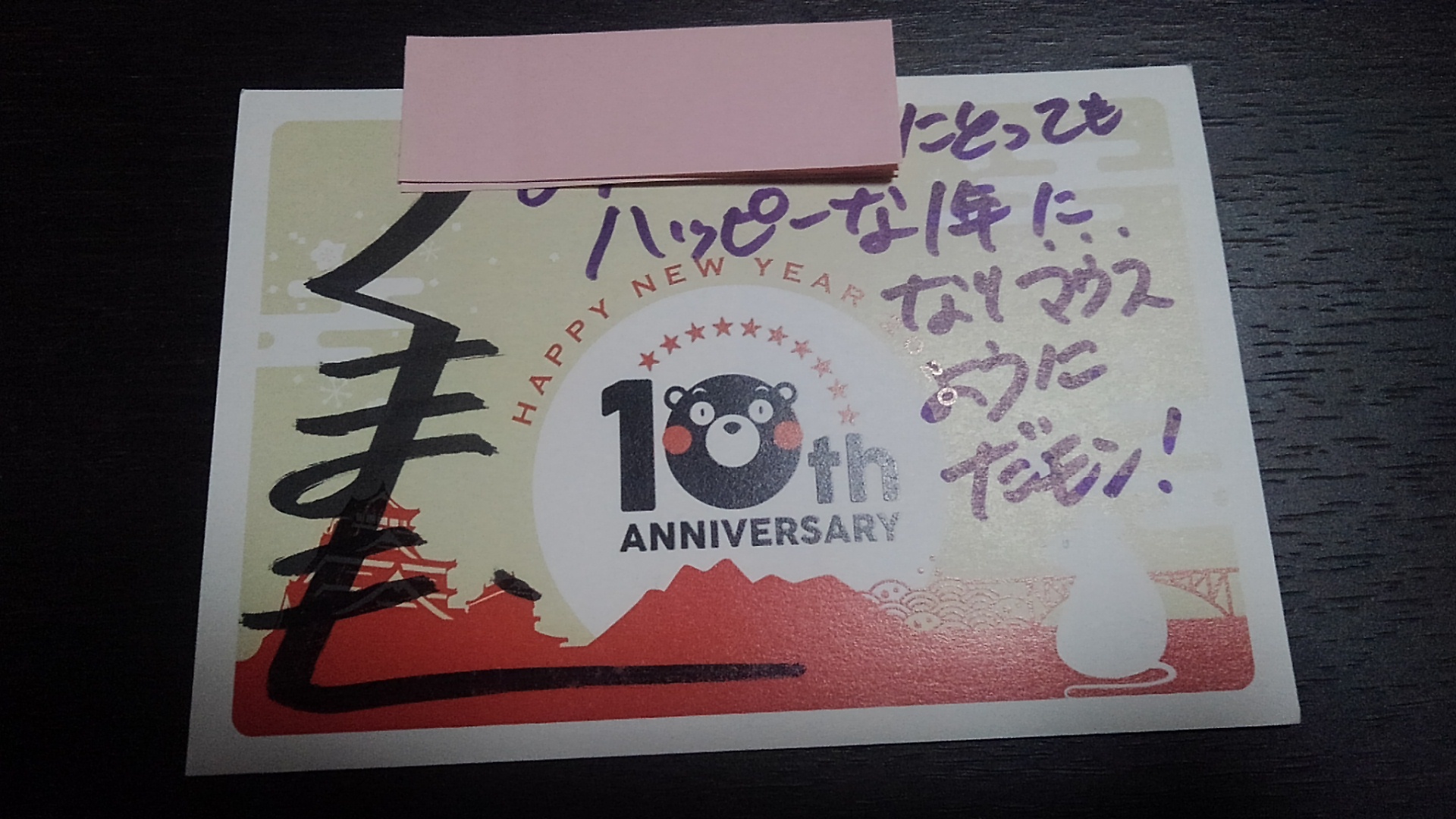 送った年賀状には下手だけどイラスト(ネズミがくまモンフードを被っている)を描いて。